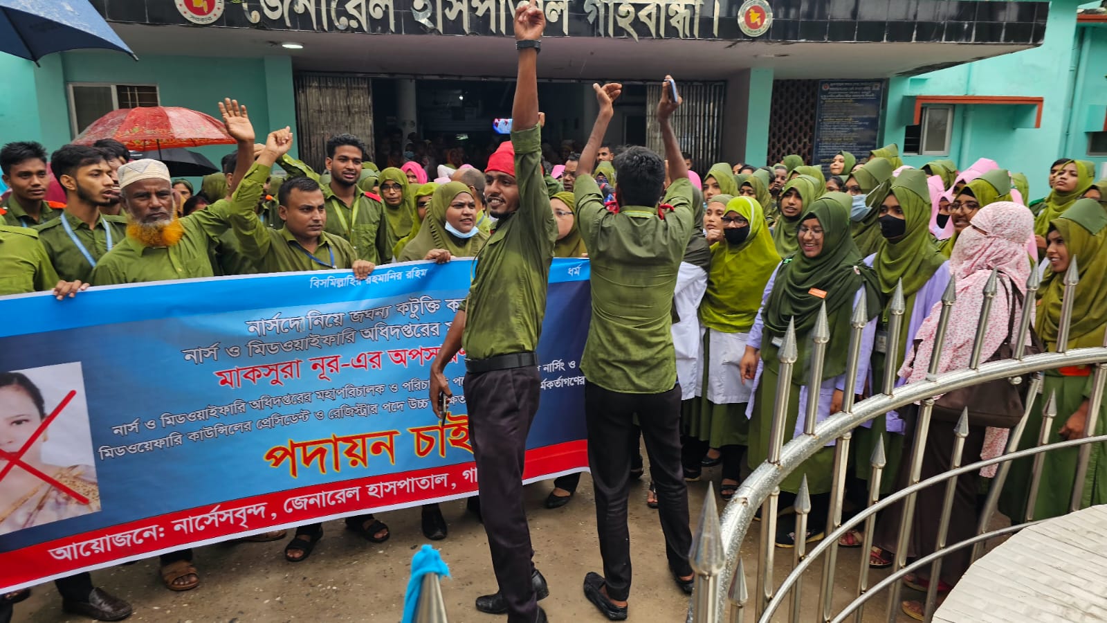 আজ সকালে গাইবান্ধা জেনারেল হাসপাতালের নার্সেস নেতৃবৃন্দের আয়োজনে হাসপাতালে কর্মরত নার্স এবং নার্সিং ট্রেনিং ইনস্টিটিউটের শিক্ষানবীশ নার্সরা মিলে একটি বিক্ষোভ মিছিল নিয়ে শহরের প্রধান প্রধান সড়ক প্রদক্ষিন করে।