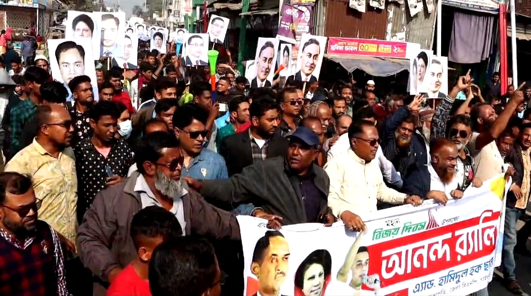 এদিকে, র্যালি ঘিরে অপ্রতিকর ঘটনা এড়াতে সড়ক ও মোড়ে পুলিশের পাশাপাশি সেনাবাহিনীর সদস্যদের টহল ছিলো চোখে পড়ার মতো। এরআগে, বিজয় র্যালিতে অংশ নিতে সকাল থেকেই নেতাকর্মীসহ সমাজের নানা শ্রেণি-পেশার মানুষ দলবেঁধে হামিদুল হক ছানার বাসার সামনে জড়ো হতে থাকেন।