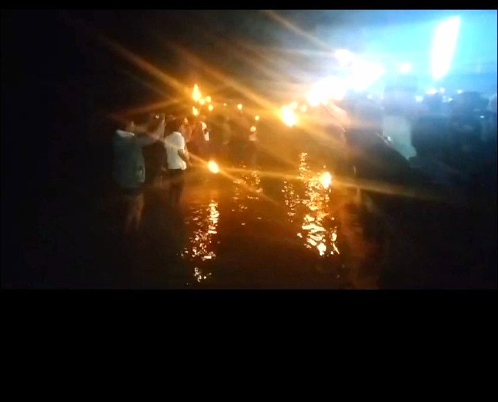 বিশেষ প্রতিনিধি : গাইবান্ধায় মশাল হাতে তিস্তা নদীর হাঁটু পানিতে নেমে প্লাকার্ড প্রদর্শন করা হয়েছে।