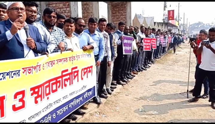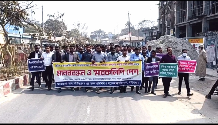 আজ সকালে শহরের গানাসাস মার্কেটের সামনে ফার্মাসিটিক্যাল ও সচেতন নাগরিকবৃন্দের ব্যানারে ঘণ্টা ব্যাপী মানববন্ধন কর্মসুচি পালান করে। এ সময়ে জেলার প্রায় আড়াই শতাধিক মেডিক্যাল রিপ্রেজেন্টটিভ ও ম্যানেজারগন অংশগ্রহন করে বিক্ষোভ প্রদর্শন করে।