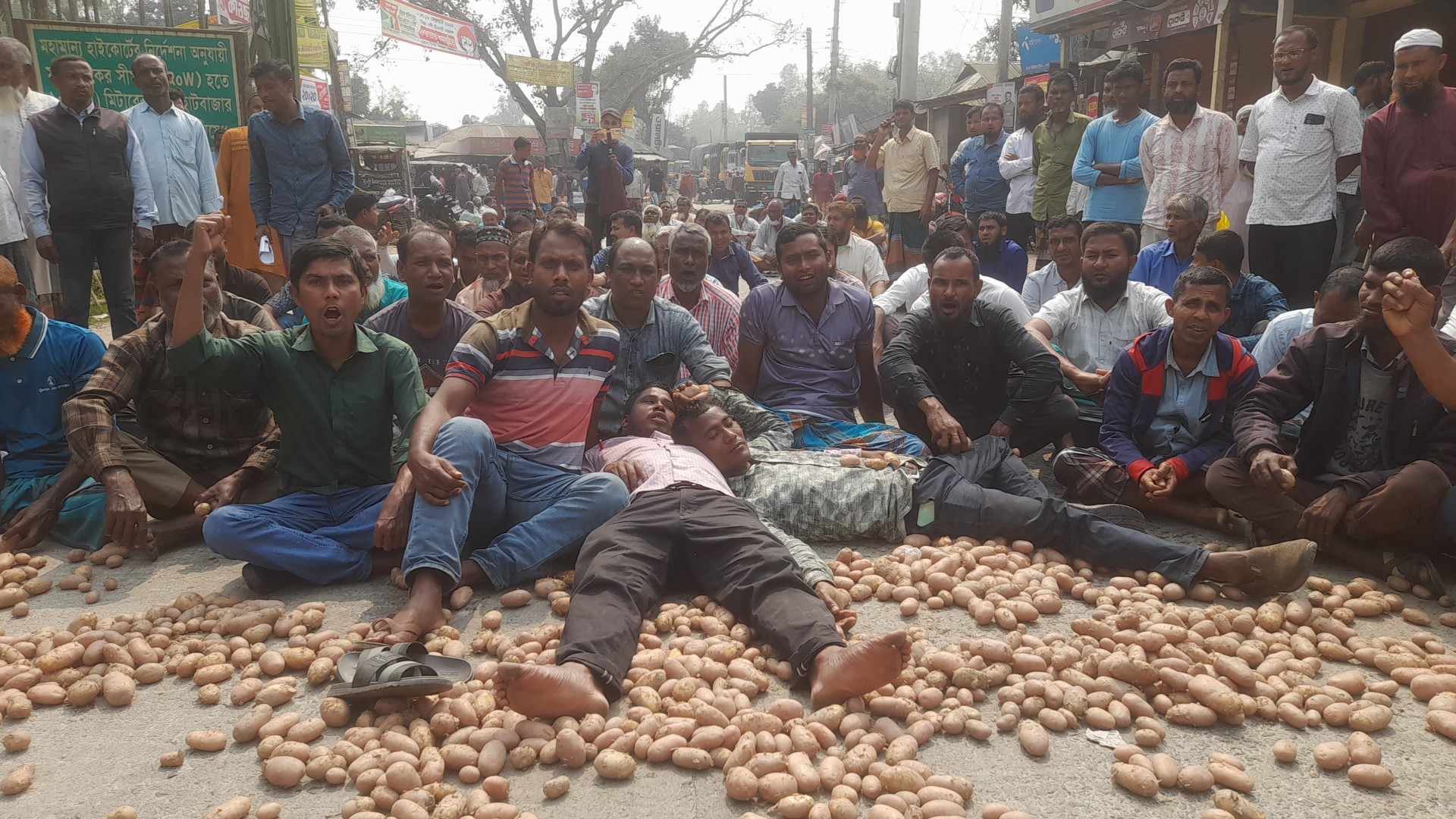 হিমাগারে আলু সংরক্ষণ ভাড়া বৃদ্ধি, সাড়ে ৩ঘন্টা মহাসড়ক অবরোধ করে চাষিদের আন্দোলন