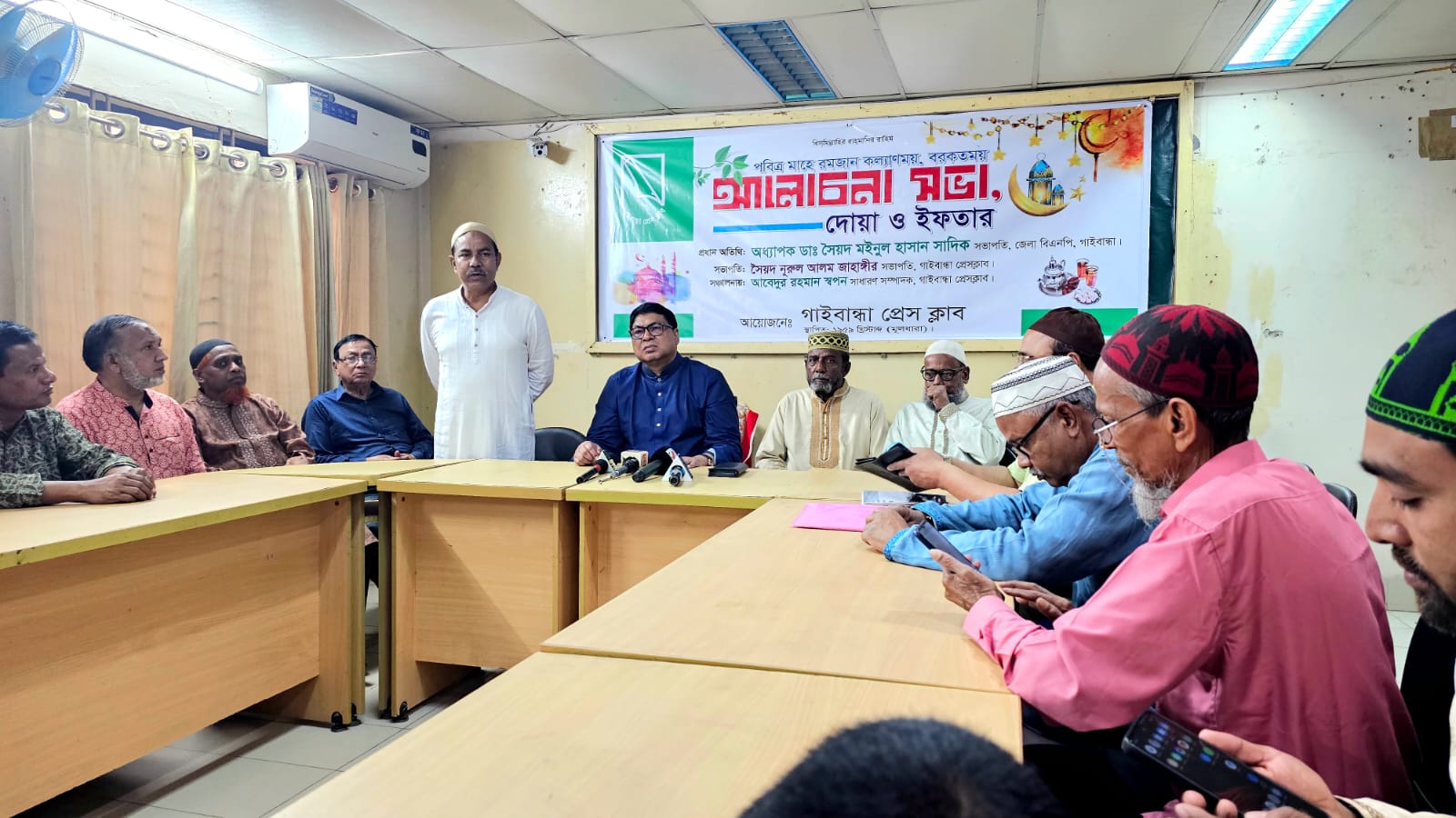 বিশেষ প্রতিনিধি: গাইবান্ধা প্রেসক্লাবের উদ্যোগে এক মিলনমুখর পরিবেশে ইফতার মাহফিল ও দোয়া আলোচনা সভা অনুষ্ঠিত হয়েছে। এ আয়োজন গাইবান্ধা চেম্বার অফ কমার্স অ্যান্ড ইন্ডাস্ট্রি, সুখনগর ডিবি রোডে অনুষ্ঠিত হয়।