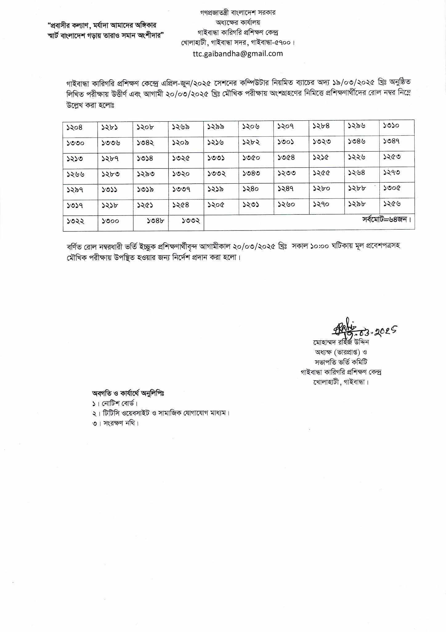 বিশেষ প্রতিনিধি : গাইবান্ধা কারিগরি প্রশিক্ষণ কেন্দ্রে বিভিন্ন ট্রেড কোর্সে ছাত্র-ছাত্রীদের রোল ও রেজাল্ট শিটে অর্থ লেনদেনের অভিযোগ উঠেছে। বিশেষ করে বিদেশ ড্রাইভিং ও কম্পিউটার পরীক্ষায় এই ধরনের অনিয়মের বিষয়টি সামনে এসেছে।