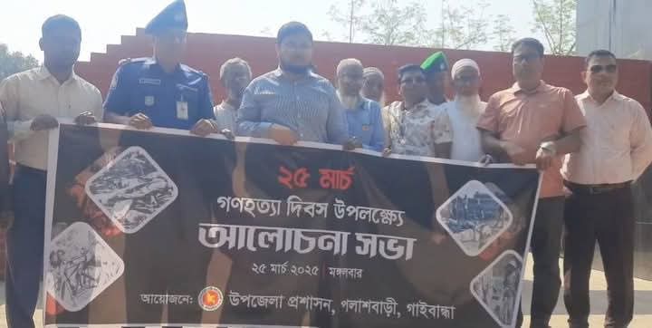 সারাদেশের ন্যায় গাইবান্ধার পলাশবাড়ীতেও দোয়া মাহফিল, আলোচনা সভা ও শ্রদ্ধা নিবেদনের মধ্যদিয়ে ২৫ মার্চ গণহত্যা দিবস পালিত হয়েছে।