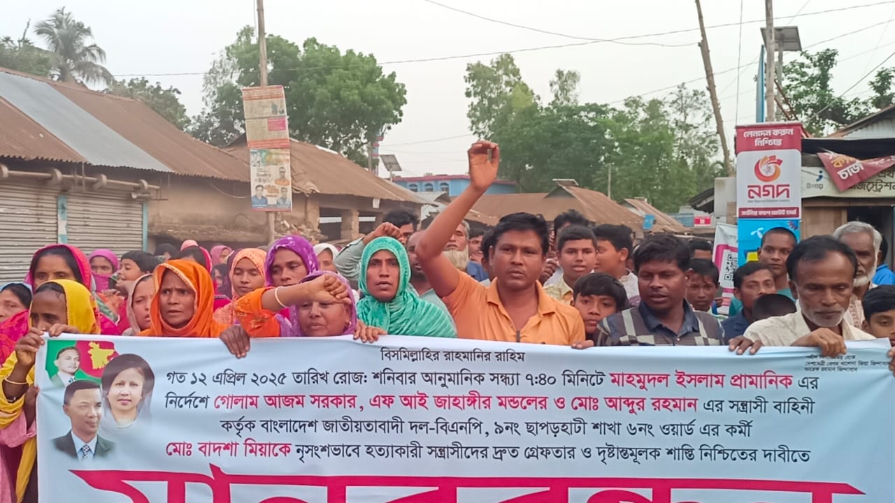 মঙ্গলবার সন্ধ্যায় উপজেলার ছাপড়হাটি ইউনিয়নের মন্ডলহাট এলাকায় মানববন্ধন ও বিক্ষোভ মিছিল অনুষ্ঠিত হয়। এতে অংশ নেন নিহতের স্বজন, রাজনৈতিক নেতাকর্মী ও এলাকাবাসী।