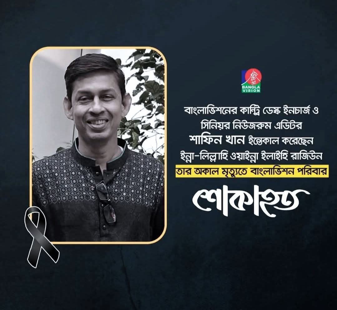 আজ তার চির বিদায়ের দিনে সহকর্মীদের কণ্ঠে একটি কথাই বারবার উচ্চারিত হয়েছে “ভালো থেকো শাফিন ভাই, শান্তিতে থেকো। আমরা আপনাকে ভুলব না।”