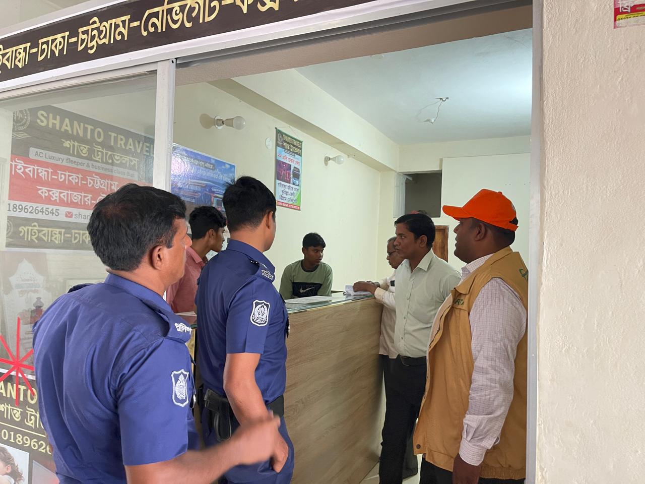 গতকাল থেকে গাইবান্ধা কেন্দ্রীয় বাস টার্মিনালে এ কার্যক্রমের সুচনা করে নেতৃত্ব প্রদান করেন জেলার সহকারী কমিশনার ও এক্সিকিউটিভ ম্যাজিস্ট্রেট রোমেল পাল।