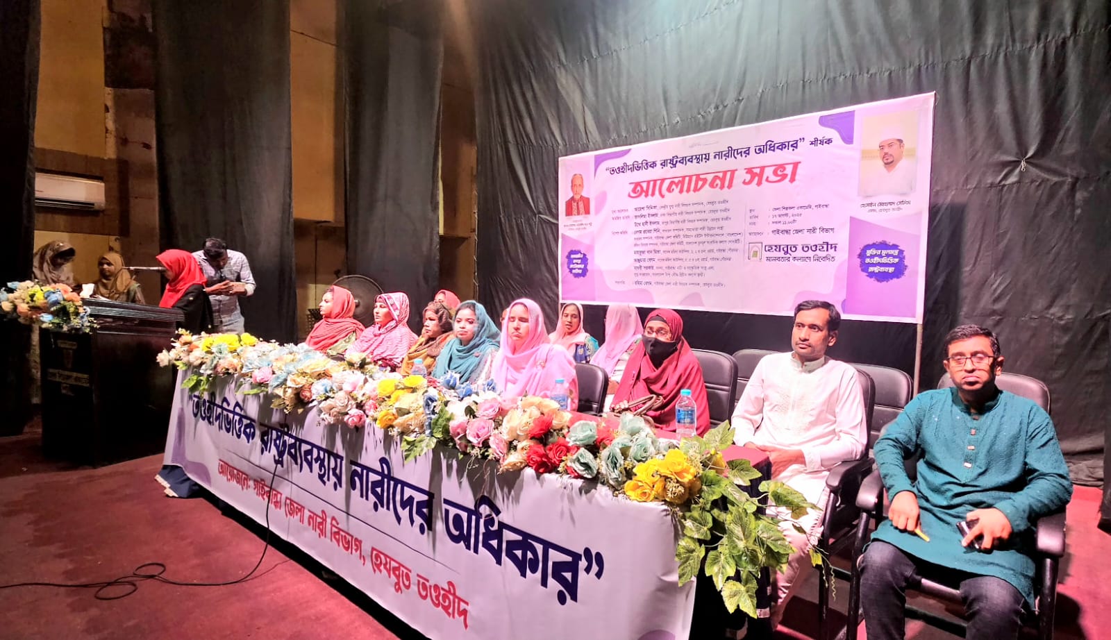 এ সময় বক্তারা বলেন “নারীর প্রকৃত মুক্তি এবং মর্যাদা কোনো ভোগবাদী সমাজব্যবস্থা দিতে পারে না। বরং তাওহীদভিত্তিক সমাজই পারে নারীকে মর্যাদা, নিরাপত্তা ও অধিকার নিশ্চিত করতে। আজকের বিশ্বে নারী হয় ধর্মের ভুল ব্যাখ্যা, নয়তো ভোগবাদী সমাজ ব্যবস্থার শিকার। নারীদের অধিকার ও মর্যাদা কেবল তাওহীদভিত্তিক সমাজ ব্যবস্থাতেই পূর্ণভাবে নিশ্চিত হতে পারে। ইসলাম নারীদের শিক্ষা, কর্মসংস্থান ও সামাজিক নেতৃত্বের সুযোগ দিয়েছে। কিন্তু যুগের পর যুগ নারীদের ভুলভাবে বঞ্চিত করা হয়েছে। তাই নারীর উন্নয়ন শুধু স্লোগানে সীমাবদ্ধ থাকলে চলবে না, বাস্তব জীবনে তাদের নিরাপত্তা ও অধিকার নিশ্চিত করতে হবে।”