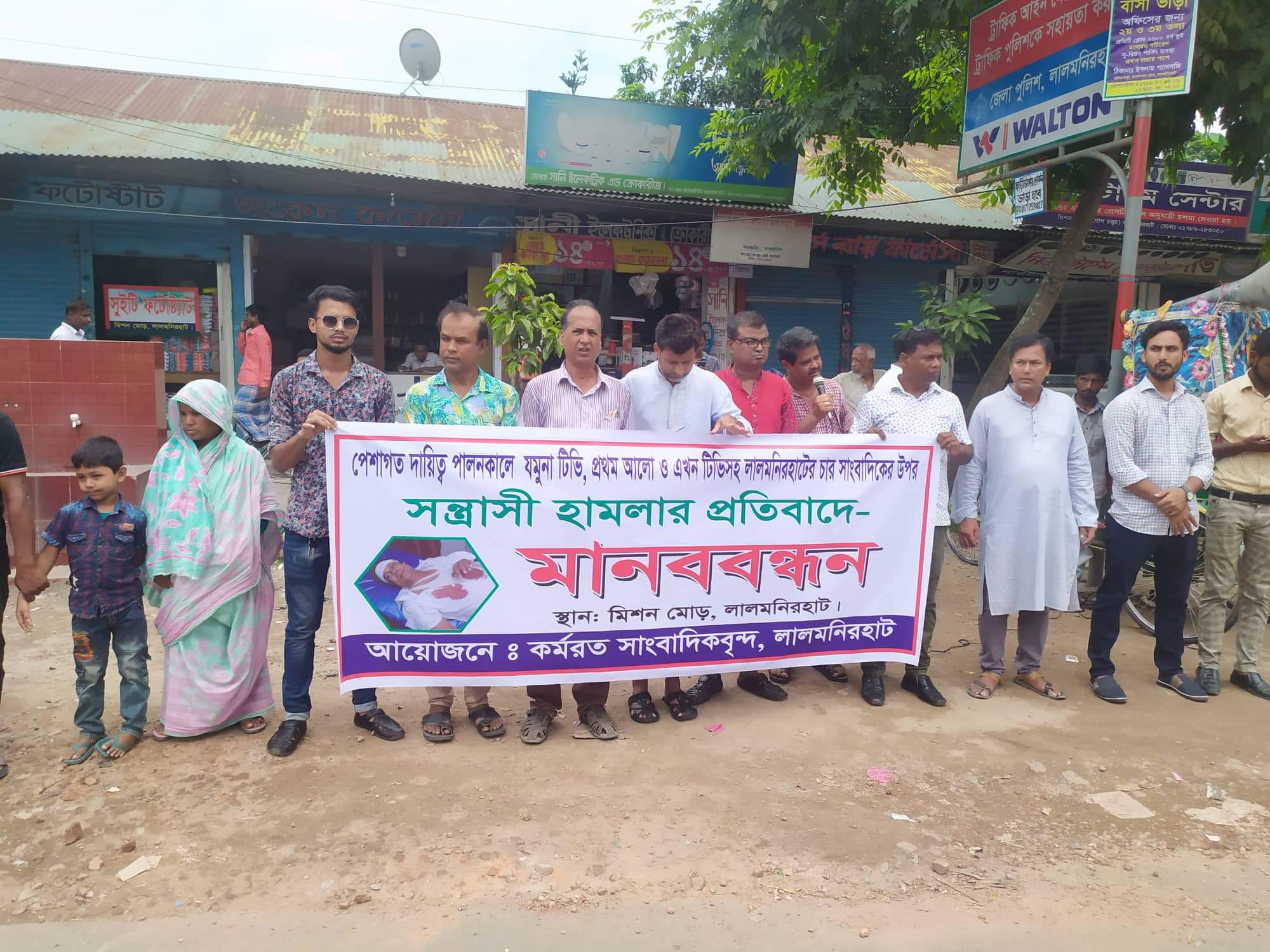 সাংবাদিকের উপর হামলাকারীদের দ্রুত গ্রেফতারের দাবীতে মানববন্ধন
