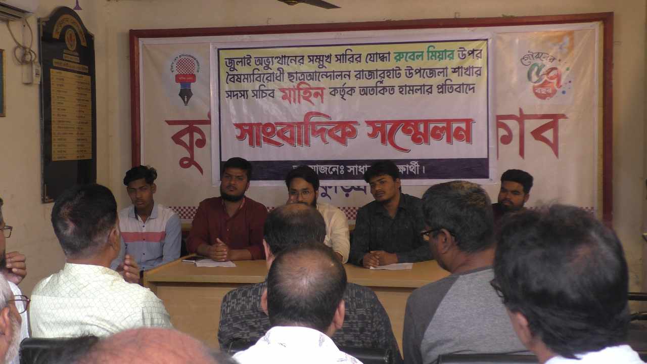 কুড়িগ্রাম প্রতিনিধি : কুড়িগ্রামের রাজারহাট উপজেলার বৈষম্যবিরোধী ছাত্র আন্দোলনের সদস্য সচিব আল মিজান মাহিনের নানান অপকর্মের বিরুদ্ধে সংবাদ সম্মলেন করে