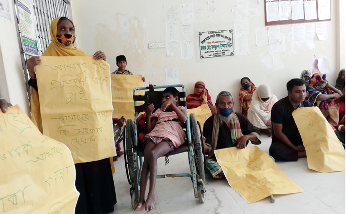ত্রাণের দাবীতে অসহায় কর্মহীন ও প্রতিবন্ধীদের অবস্থান কর্মসুচি পালন