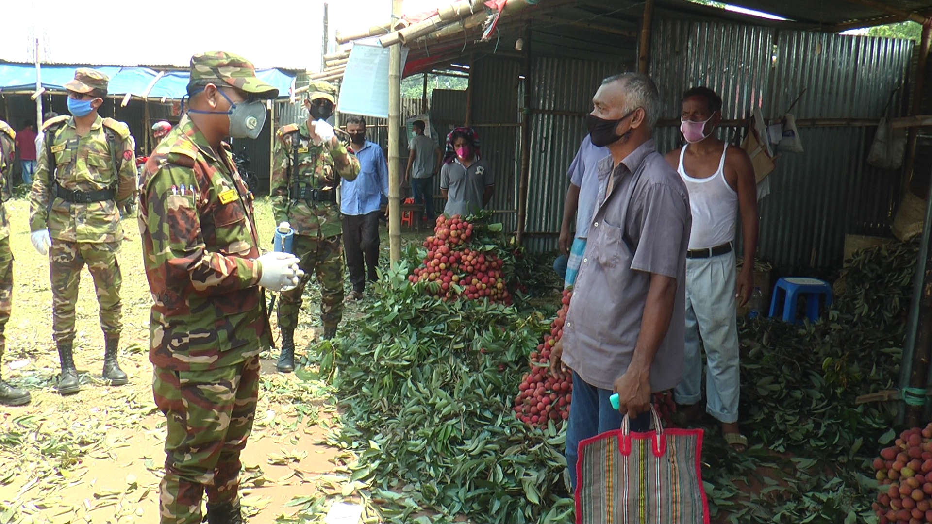 দিনাজপুরের বড় ময়দানের লিচু বাজার মনিটরিং করছে সেনাবাহিনী