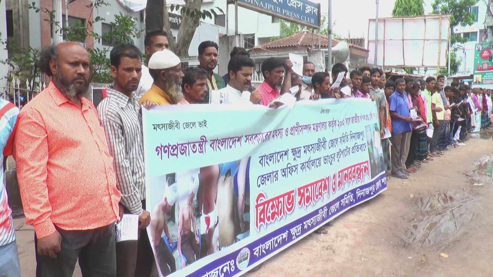 কার্যালয় ভাংচুর ও সন্ত্রাসী হামলার প্রতিবাদে এবং ৬ দফা দাবী বাস্তাবায়নের লক্ষ্যে মানববন্ধন ও প্রতিবাদ সমাবেশ করেছে দিনাজপুরে ক্ষুদ্র মৎস্যজীবী জেলে সমিতি
