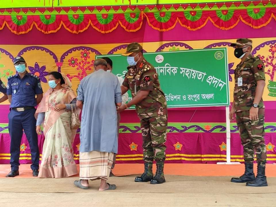 নিজেদের রেশন থেকে দুস্থ ও কর্মহীনদের মাঝে সেনবাহিনীর ত্রাণ বিতরণ