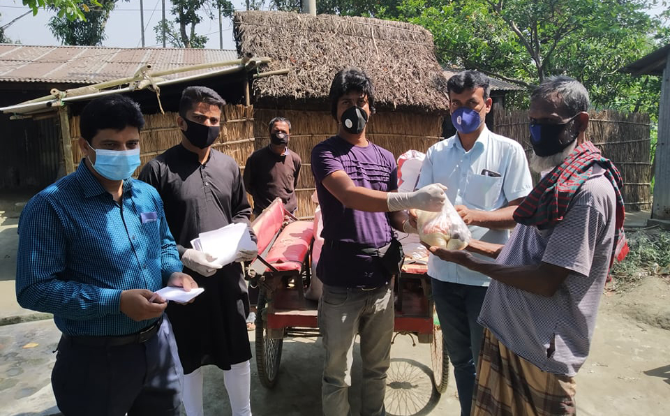 বাড়ী বাড়ী গিয়ে খাদ্য সহায়তা পৌছে দিলো মানবতার দেওয়াল