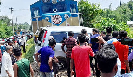 রেল ক্রসিংয়ে ট্রেন-মাইক্রোবাস সংঘর্ষ, নিহত ৩
