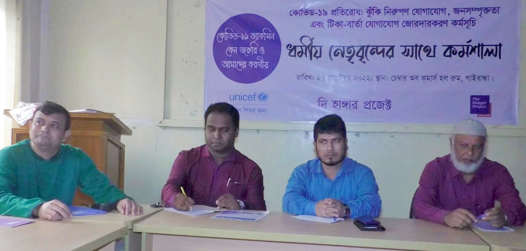 বিশেষ প্রতিনিধি:কোভিড (১৯) প্রতিরোধে করোনীয় বিষয়ে ধর্মীয় নেতৃবৃন্দের সাথে আলোচনা সভা অনুষ্ঠিত হয়েছে গাইবান্ধায়। আজ দূপুরে ইউনিসেফের সহযোগিতায় এবং দি