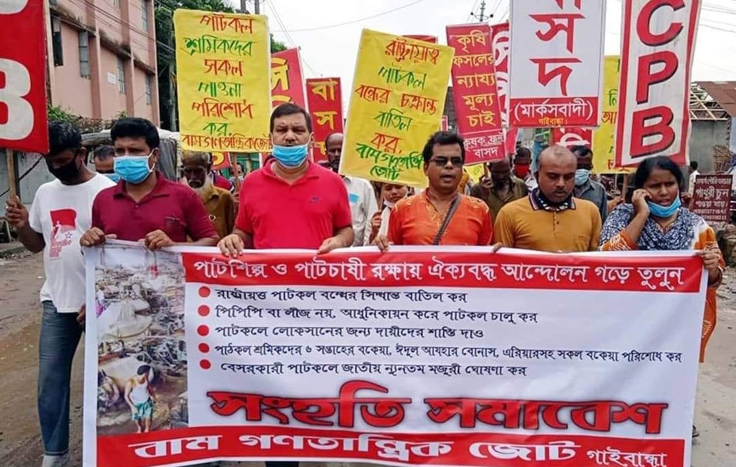 পাটকল বন্ধের সিদ্ধান্ত বাতিলের দাবিতে গাইবান্ধায় বাম জোটের সংহতি সমাবেশ ও মিছিল