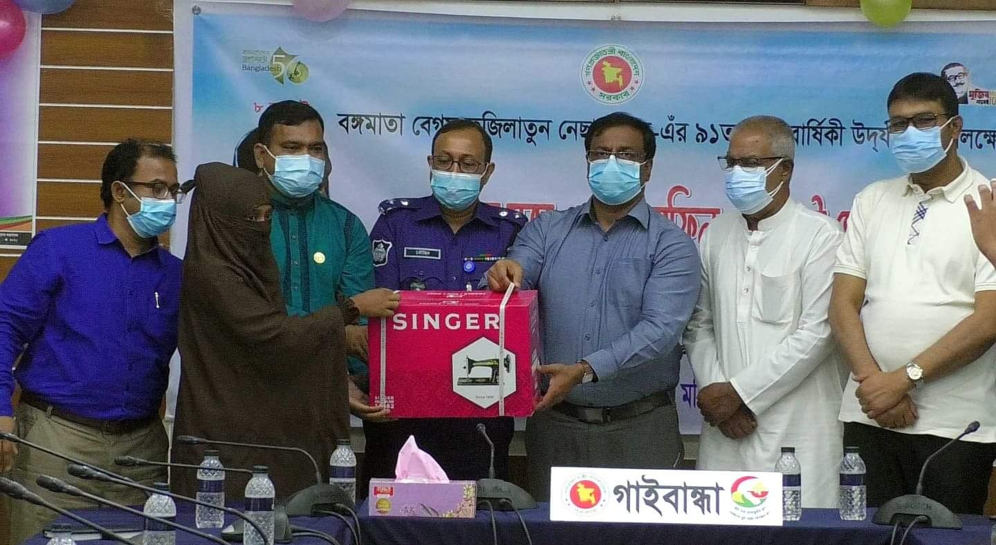 গাইবান্ধায় বঙ্গমাতা বেগম ফজিলাতুন নেছা মুজিবের ৯১তম জন্মবার্ষিকী উপলক্ষে দু:স্থ নারীদের সেলাই মেশিন ও নগদ অর্থ সহায়তা প্রদান