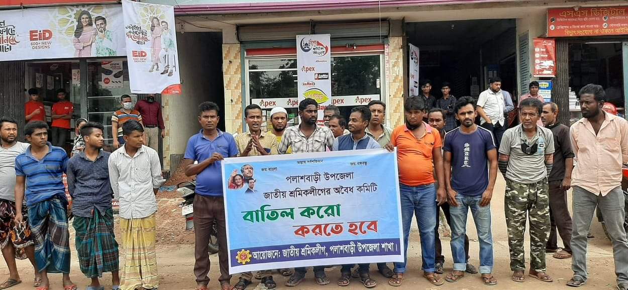 জেলা শ্রমিক দলের সহ সাধারন সম্পাদককে উপজেলা শ্রমিক লীগের যুগ্ন আহবায়ক করার প্রতিবাদে বিক্ষোভ ও মানববন্ধন