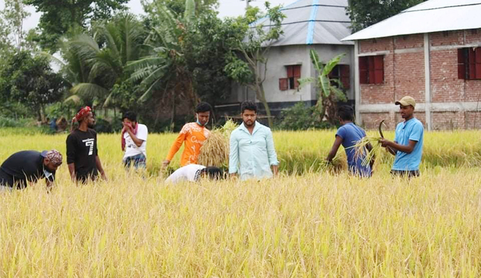 কৃষকের ধান কেটে দিলো বিরামপুর ছাত্রলীগ