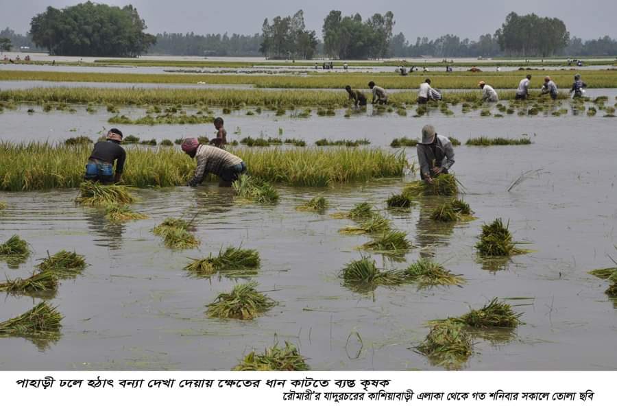 ভারী বর্ষণে নিম্নাঞ্চলের ২ হাজার হেক্টর জমির পাকা ধান নিমজ্জিত