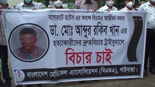 গাইবান্ধা প্রতিনিধিি: বাগেরহাট ম্যাটস এর অধ্যক্ষ ও বিএমএ এর আজীবন সদস্য ডা. আব্দুর রকিব খানের হত্যাকারীদের দ্রুত বিচার ট্রাইবুনালে বিচারের