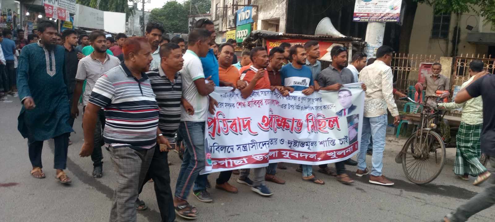 যুবদল নেতা বিলালের উপর হামলার প্রতিবাদে পাইকগাছা যুবদলের বিক্ষোভ মিছিল ও সমাবেশ