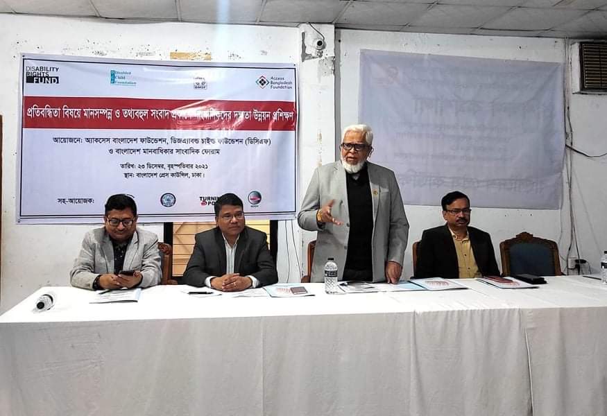 প্রতিবন্ধীদের অধিকার আদায়ে জোরালো ভূমিকা রাখতে সাংবাদিকদের আহ্বান জানিয়েছেন বাংলাদেশ প্রেস কাউন্সিল চেয়ারম্যান