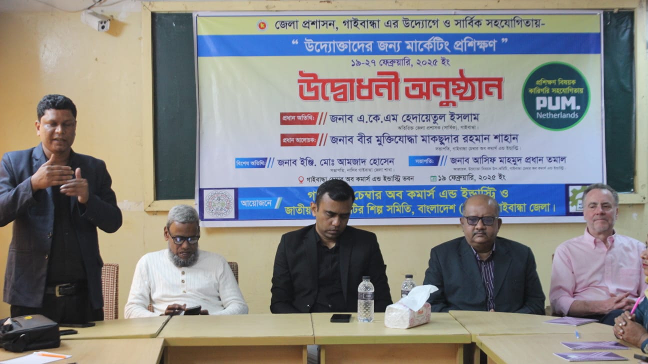 বিশেষ প্রতিনিধি : গাইবান্ধায় “উদ্যোক্তাদের জন্য মার্কেটিং” বিষয়ক প্রশিক্ষণ কোর্সের উদ্বোধন করা হয়েছে। আজ সকালে গাইবান্ধা জেলা প্রশাসন এর উদ্যোগে