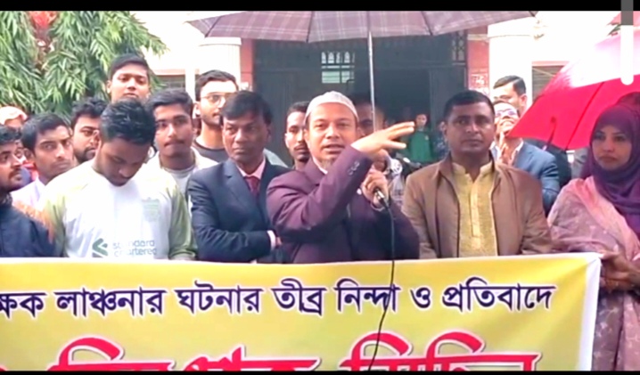 সন্ত্রাসী সজন কতৃক শিক্ষক লাঞ্চিতের প্রতিবাদে মানববন্ধন ও বিক্ষোভ