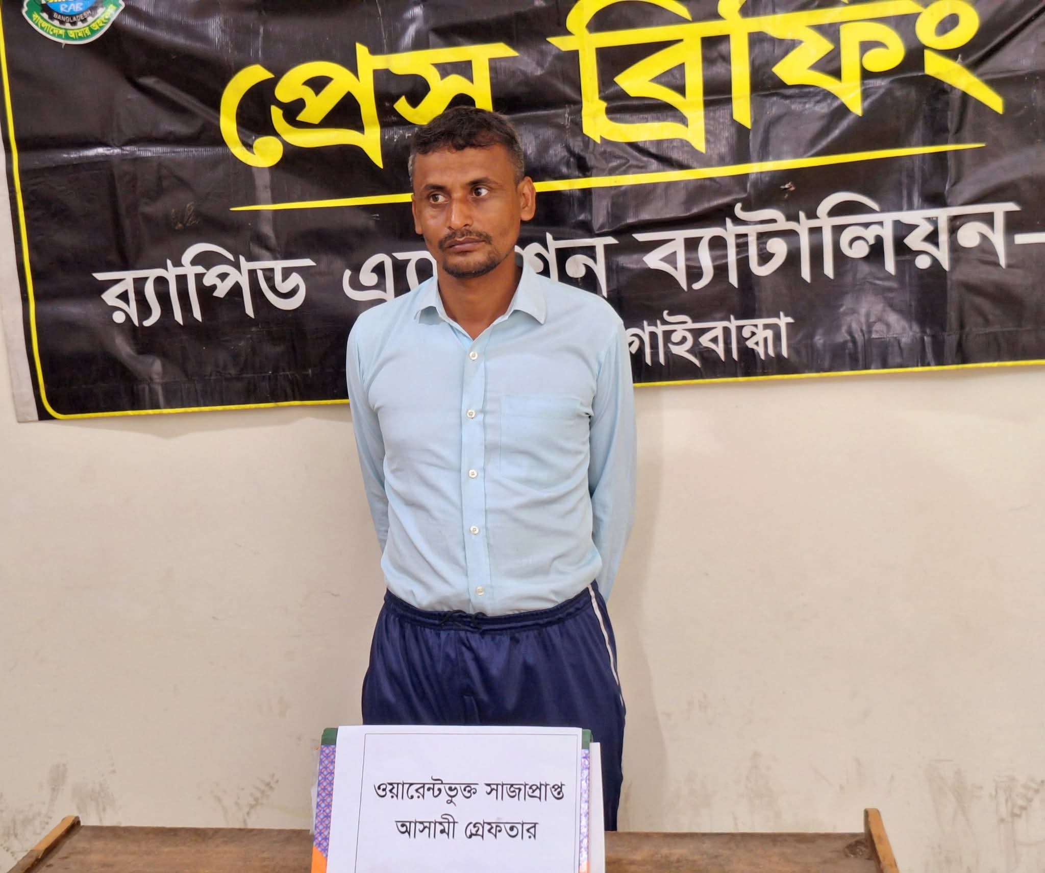 বিশেষ প্রতিনিধি : গাইবান্ধার গোবিন্দগঞ্জে সাজাপ্রাপ্ত ওয়ারেন্টভুক্ত আসামি ফরিদ শেখকে (৩৩) গ্রেপ্তার করেছে র্যাপিড অ্যাকশন ব্যাটালিয়ন (র্যাব-১৩)। বৃহস্পতিবার (২২ মে)