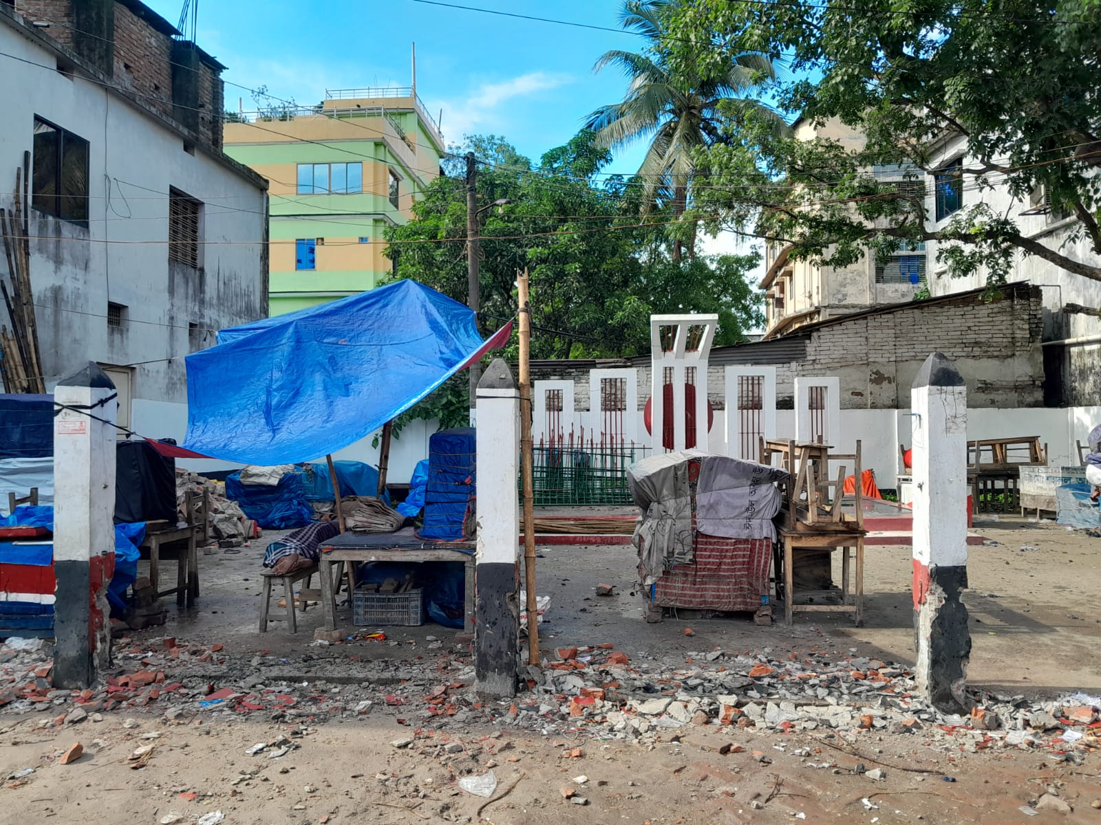 রাতের আধারে ভেঙে ফেলা হলো শহীদ মিনারের সীমানা প্রাচীন