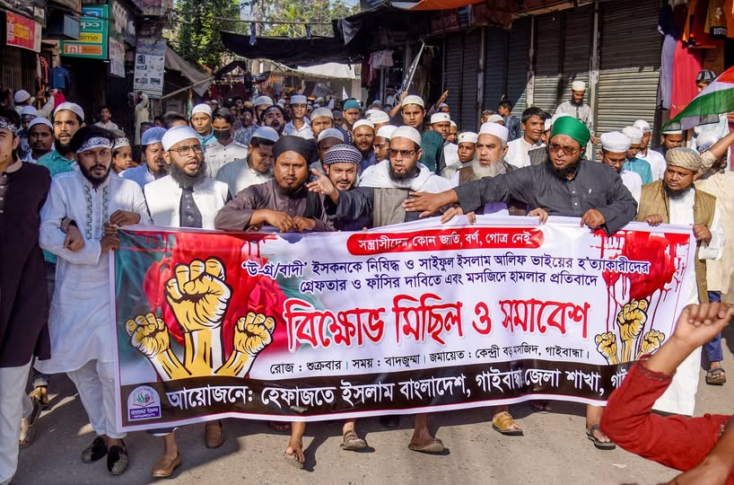 ইসকনকে নিষিদ্ধের দাবিতে গাইবান্ধায় হেফাজতে ইসলামের ব্যানারে বিক্ষোভ মিছিল ও সমাবেশ