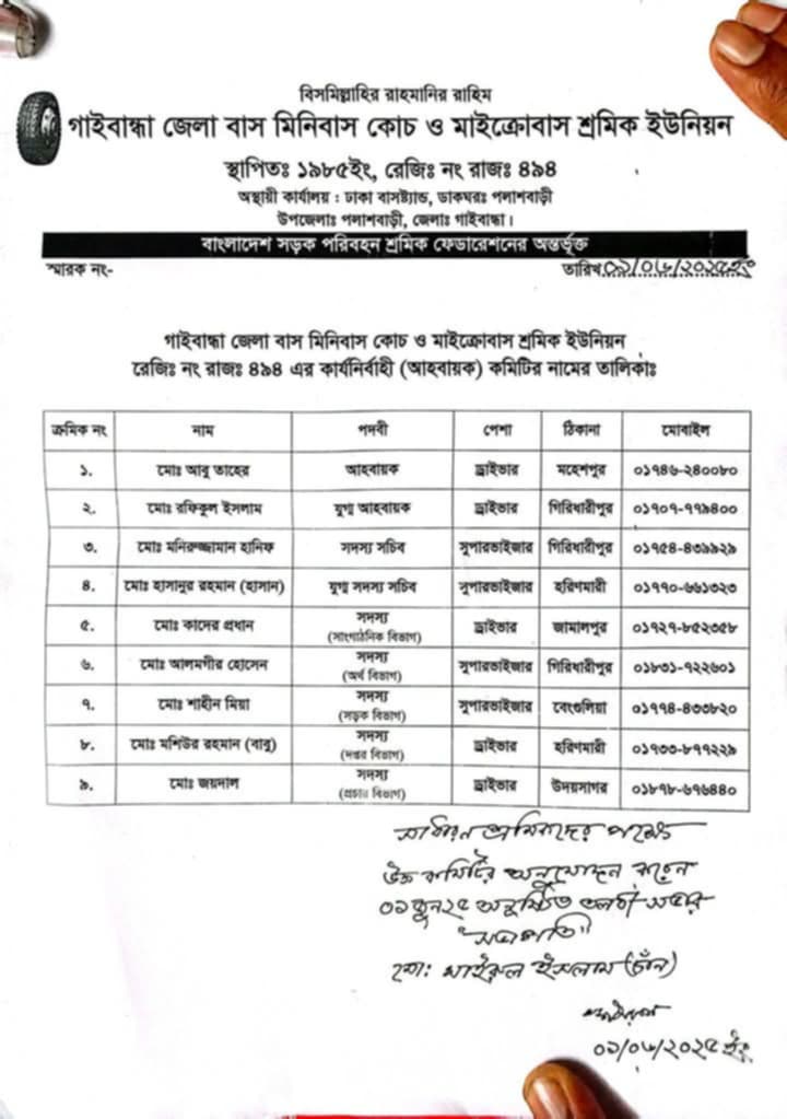 বিশেষ প্রতিনিধি : গাইবান্ধা জেলা বাস-মিনিবাস ও মাইক্রোবাস শ্রমিক ইউনিয়নের সাবেক সাধারণ সম্পাদক এবং পলাশবাড়ী পৌরসভার সাবেক মেয়র গোলাম সারোয়ার