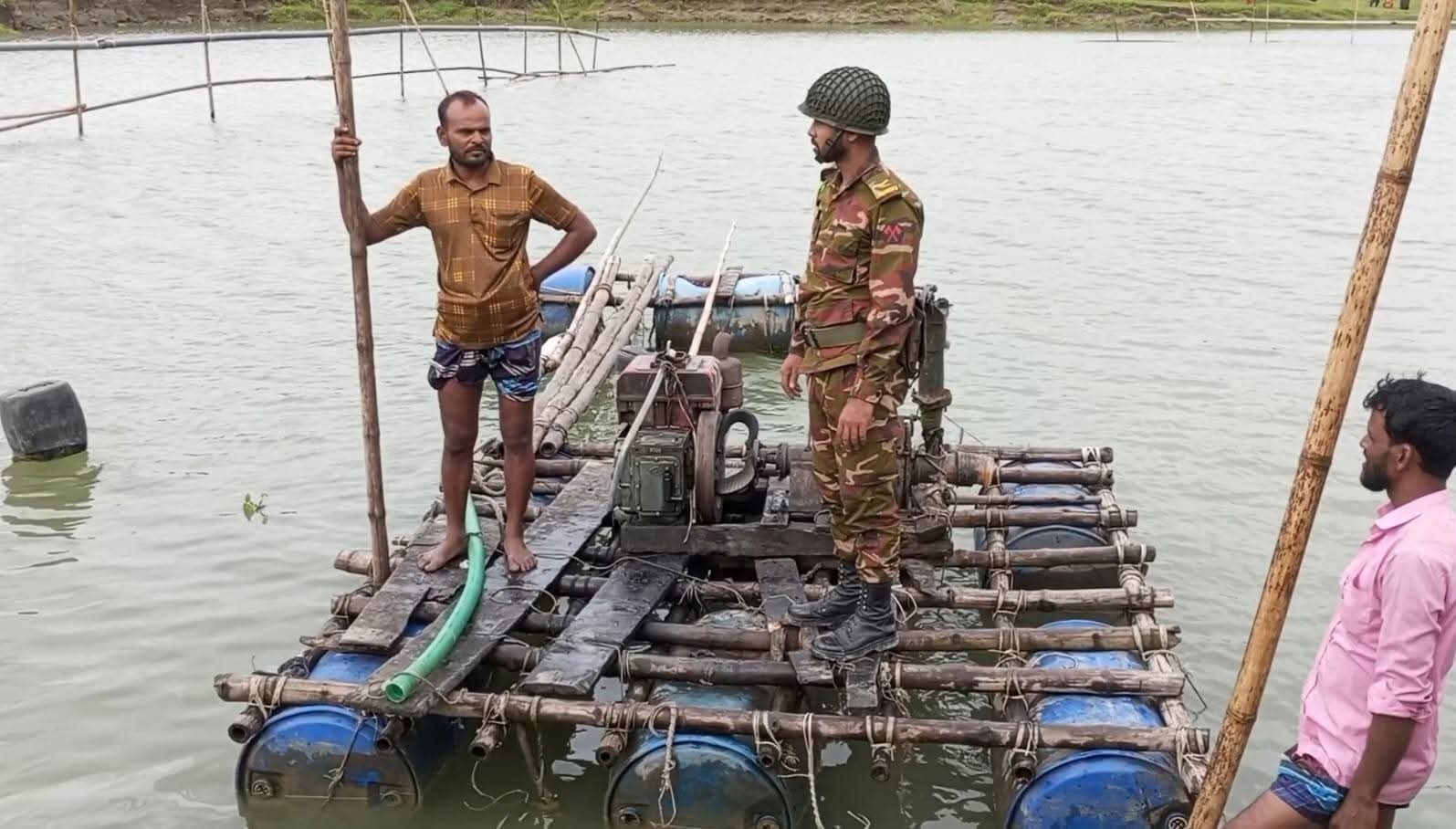 যৌথ বাহিনীর অভিযানে অবৈধ ড্রেজার মেশিন জব্দ, গ্রেপ্তার ২