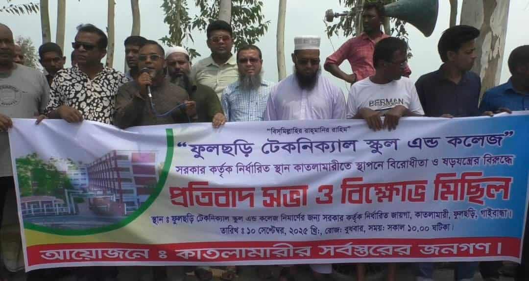 সরকার কর্তৃক নির্ধারিত স্থান গজারিয়া ইউনিয়নের কাতলমারিতে ফুলছড়ি টেকনিক্যাল স্কুল এন্ড কলেজ স্থাপনের দাবিতে শিক্ষার্থীরা প্রতিবাদ সভা ও বিক্ষোভ মিছিল