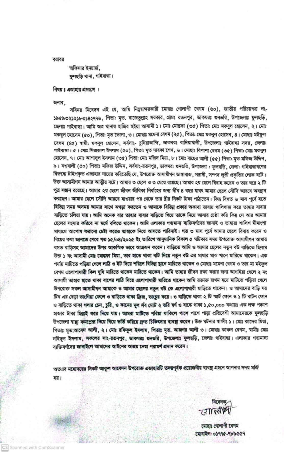 গৃহবধূর ওপর হামলা ও লুটপাটের অভিযোগ, ৯ জনের বিরুদ্ধে থানায় অভিযোগ দায়ের