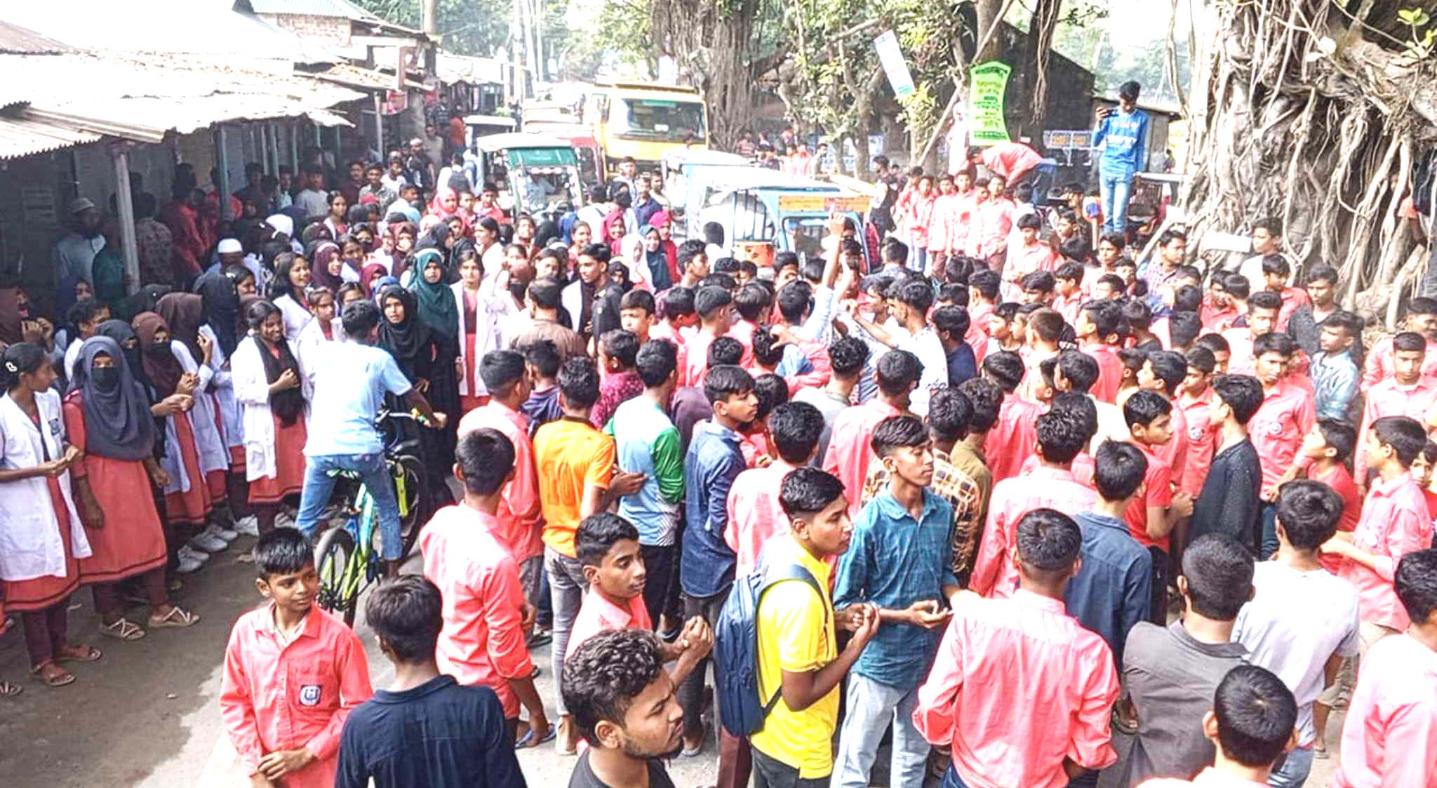 প্রধান শিক্ষকের পদত্যাগের দাবীতে ফুলছড়িতে শিক্ষার্থীদের বিক্ষোভ ও সড়ক অবরোধ