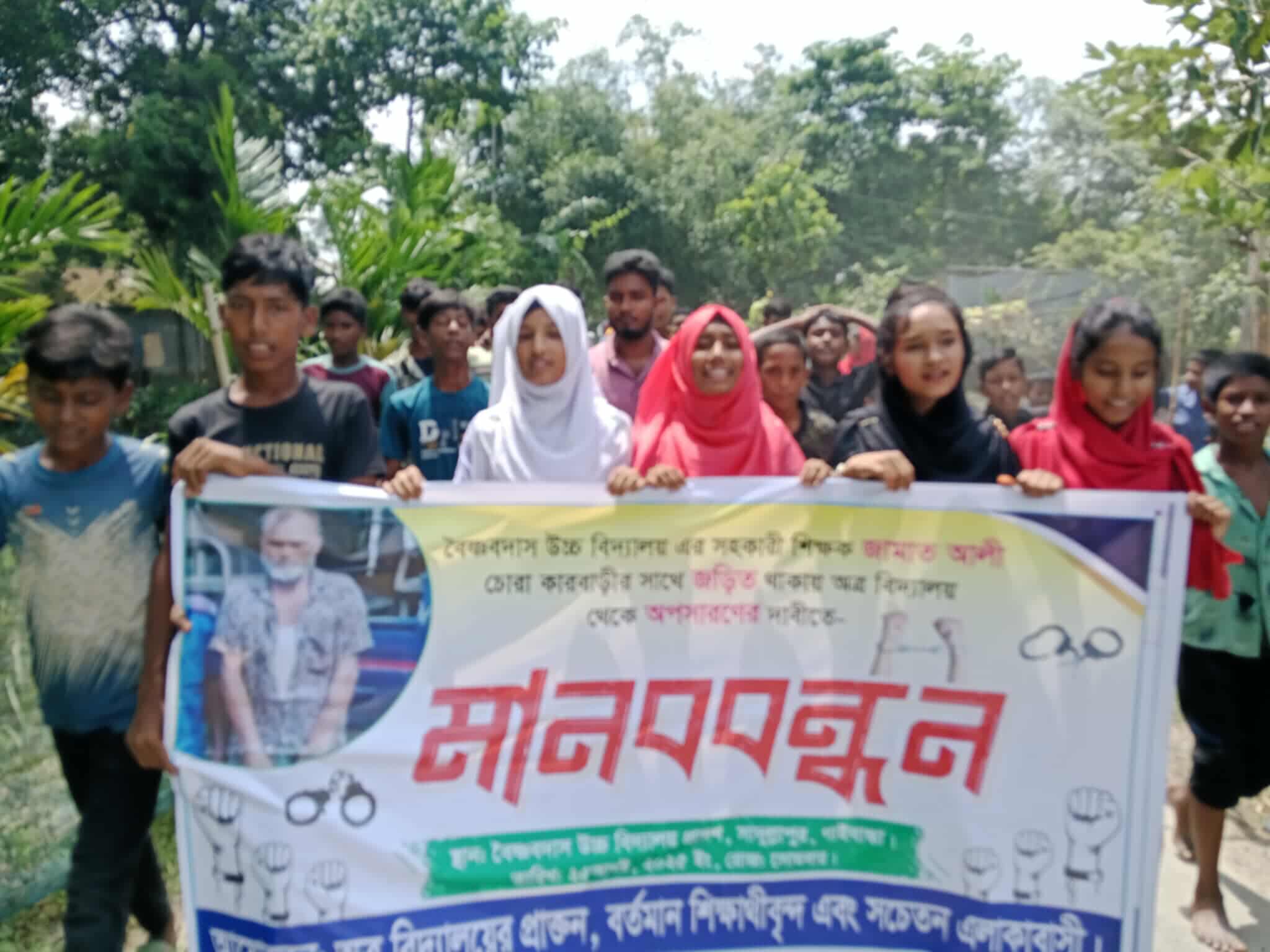 সহকারি শিক্ষক জামাত আলীকে বহিস্কারের দাবীতে মানববন্ধন