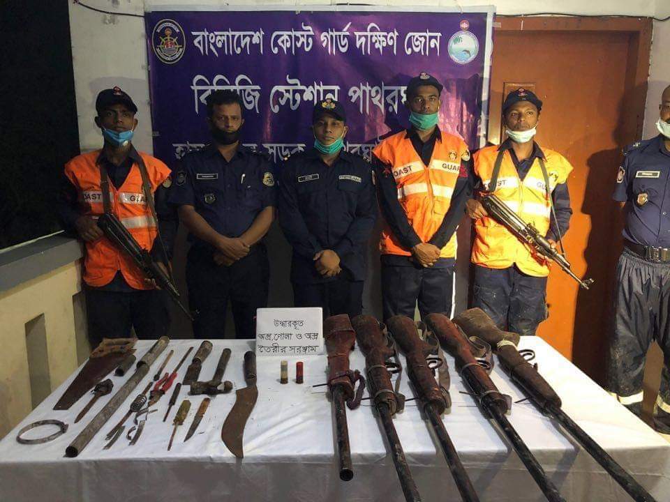 সুন্দরবনে জলদস্যুদের আস্তানা থেকে অস্ত্র,গুলি উদ্ধার