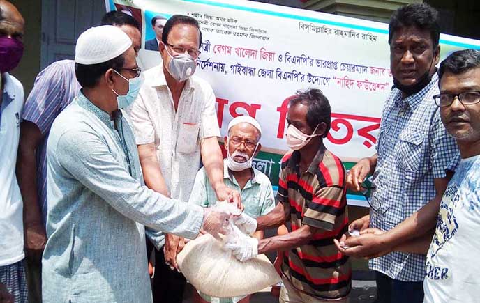 নাহিদ ফাউন্ডেশনের সৌজন্যে গাইবান্ধা জেলা বিএনপির ত্রাণ বিতরণ