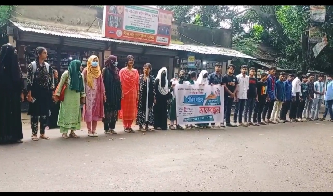 ভালুকা উপজেলা স্বাস্থ্য কমপ্লেক্সের অনিয়ম ও দূর্নীতি বন্ধের দাবিতে শিক্ষার্থীদের মানববন্ধন