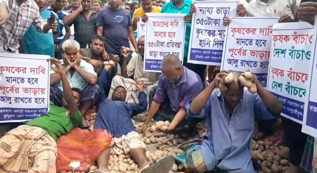 মহাসড়কে আলু ঢেলে চাষীদের সড়ক অবরোধ