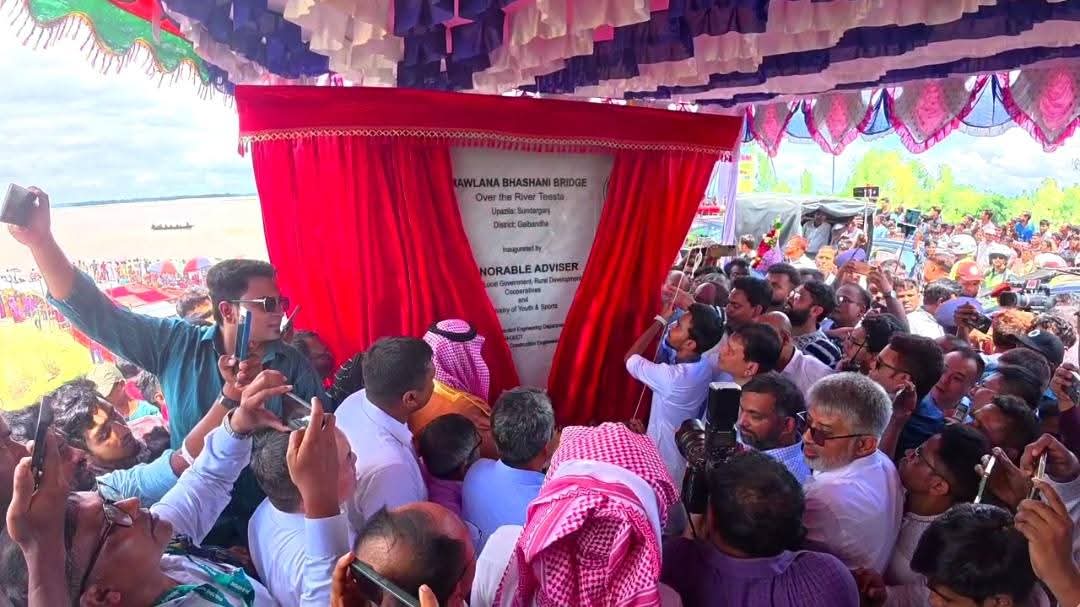 নিজস্ব প্রতিবেদক :শত প্রতীক্ষার অবসান ঘটিয়ে অবশেষে উন্মোচিত হলো গাইবান্ধা ও কুড়িগ্রামের মানুষের স্বপ্নের মাওলানা ভাসানী সেতু। গাইবান্ধার সুন্দরগঞ্জ উপজেলার
