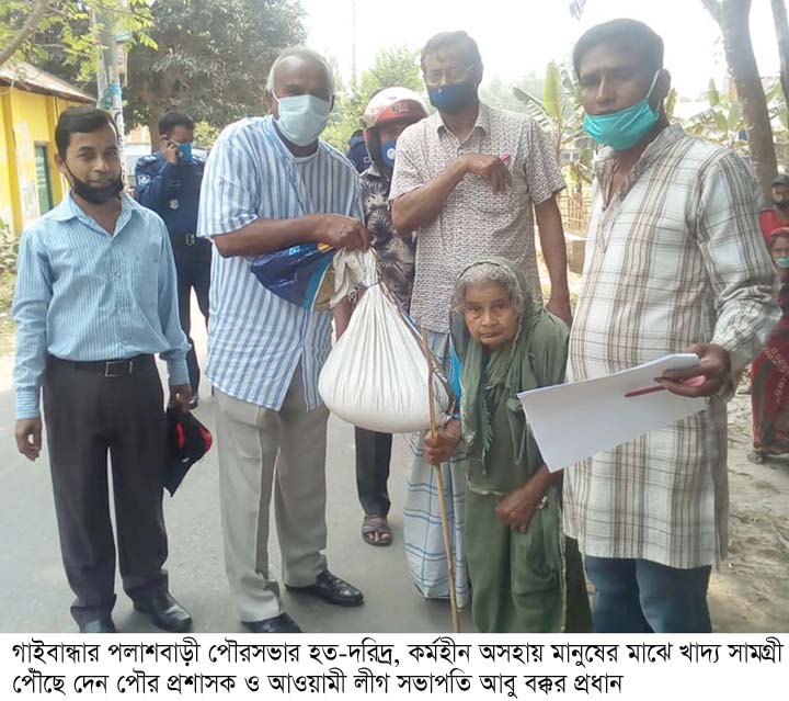 পলাশবাড়ী (গাইবান্ধা) প্রতিনিধিঃ দেশের বর্তমান সময়ে করোনা ভাইরাস মোকাবিলায় গাইবান্ধার পলাশবাড়ী নবগঠিত পৌরসভার হত-দরিদ্র, কর্মহীন অসহায় মানুষের মাঝে মাননীয় প্রধানমন্ত্রী