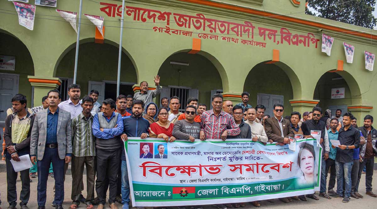 বিএনপি চেয়ারপার্সন বেগম খালেদা জিয়ার নিঃশর্ত মুক্তির দাবিতে গাইবান্ধায় বিএনপির বিক্ষোভ মিছিল সমাবেশ