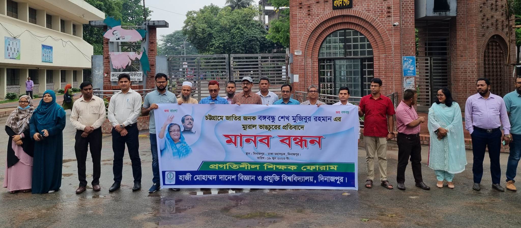 জাতির পিতা বঙ্গবন্ধু’র মুরাল ভাঙচুরের প্রতিবাদে দিনাজপুরে মানববন্ধন