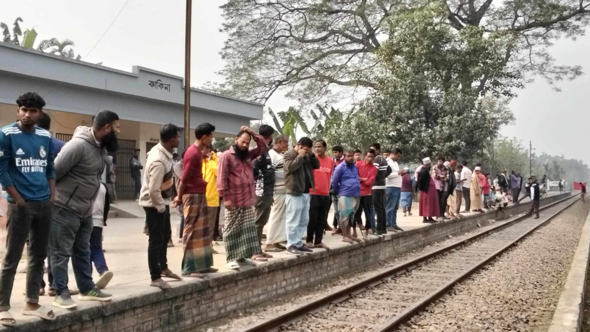 কাকিনা স্টেশনে’ বুড়িমারী এক্সপ্রেস স্টপেজের দাবিতে বিক্ষোভ