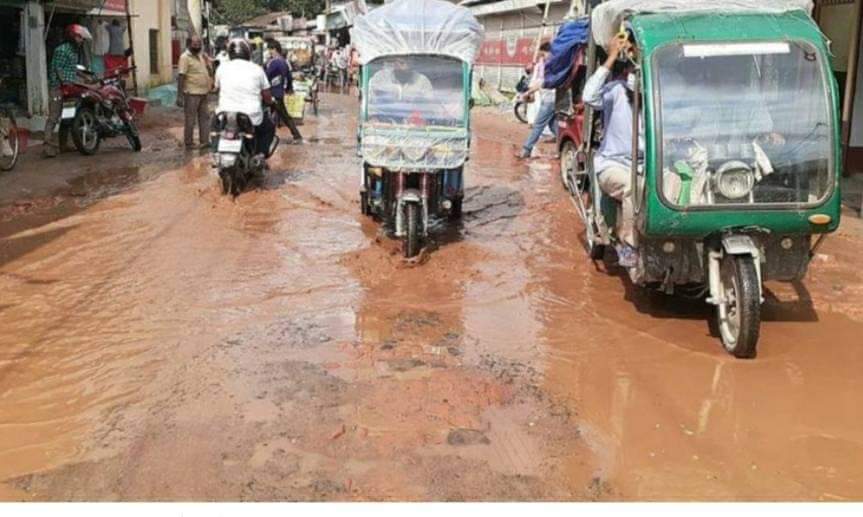 খানাখন্দে ভরে উঠেছে লালমনিরহাট শহরের ব্যস্ততম প্রধান সড়কটি